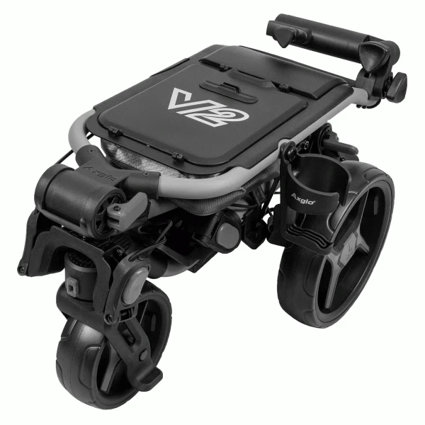The Axglo Tri 360 V2 golf trolley boasts an innovative patented gliding system which allows for quick and easy assembly. Featuring a large handle with an integrated storage compartment the Axglo V2 boasts the best storage system of any trolley on the market. The New & Improved 3 Wheel design with 360-degree swivel front wheel offers effortless control and excellent manoeuvrability around the golf course. The Simple to engage and release hand brake system allows for the trolley to be used on hilly golf courses with ease and the adjustable handle allows the height to be set to suit each user’s preference. The easy-to-assemble V2 golf trolley is characterised by its robust yet lightweight construction, built from an ultra-durable aircraft-grade aluminium the V2 weighs in at just over 5kg. What’s more its impressive folded compact size makes it easy to store.