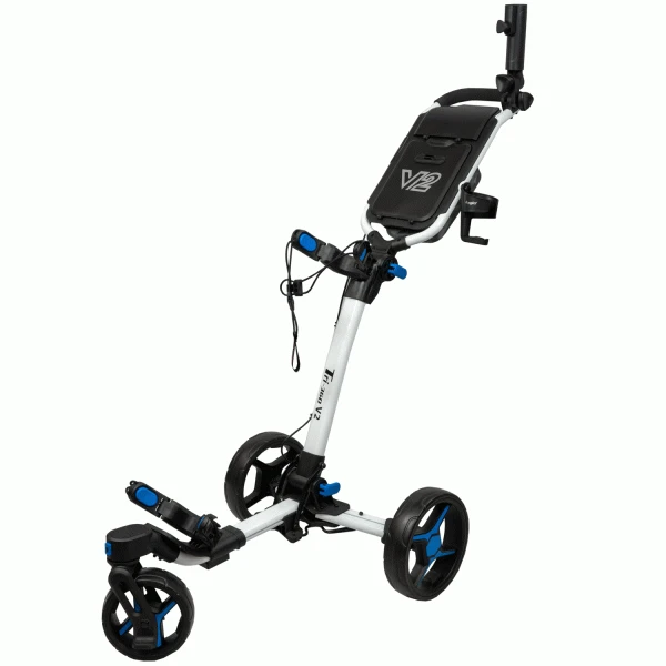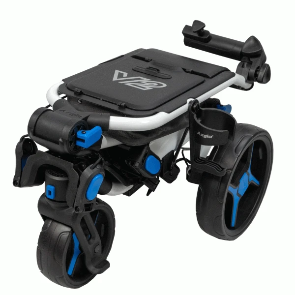 AXGLO TRI-360 V2 GOLF PUSH TROLLEY – WHITE / BLUE +FREE £39.99 ACCESSORY PACK