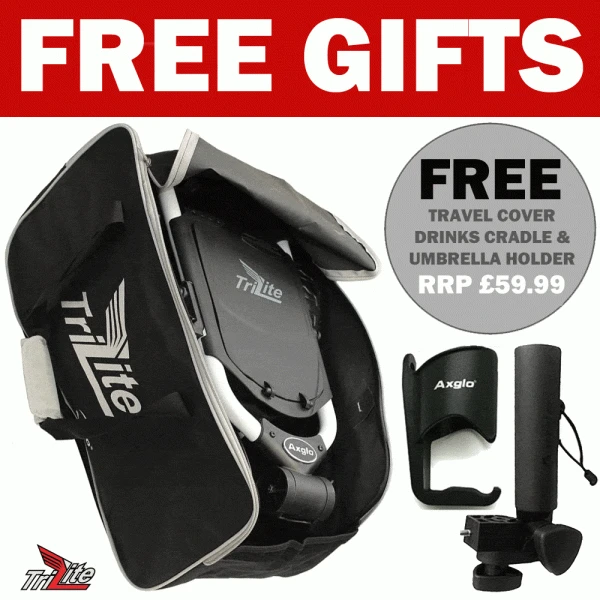 AXGLO TRILITE 3 WHEEL GOLF TROLLEY – GREY / BLUE +FREE £39.99 ACCESSORY PACK
