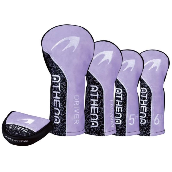 The Benross Athena Ladies Complete Premium golf package set is designed to get you straight into the game of golf, the Benross Athena package offers golf clubs that provide consistency and distance. This complete package set comes with all the clubs you need and a stylish cart bag with matching vintage head covers to impress your friends on the golf course or range.The package features an oversized 6/AL/4V forged Titanium Driver with black PVD plating that makes it easier to hit off the tee for long straight distance. The fairway wood has been created to help you get the ball up in the air with a high launch thanks to the enhanced MOI. This helps improve shots off the tee and the fairway. The set comes complete with hybrids, the perfect replacement for the longer irons as are much easier to hit with a high launch.