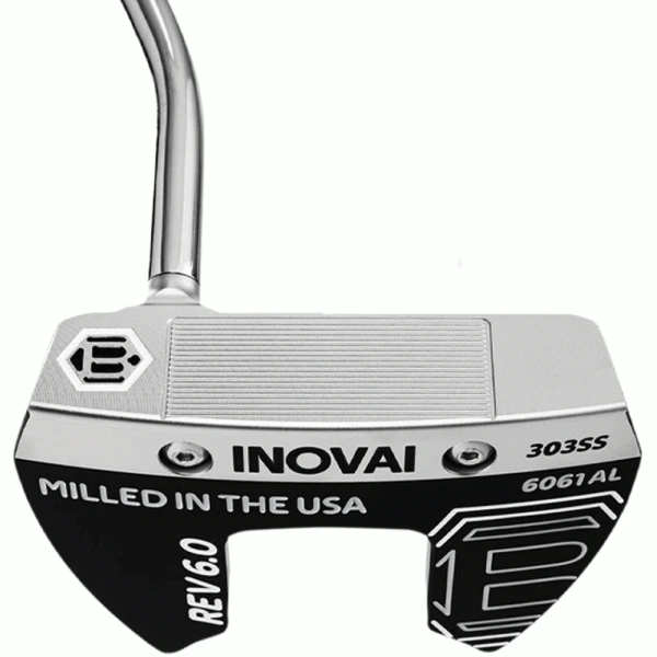 The newly re-engineered INOVAI 6.0 Spud was designed by Sam Bettinardi to perfect our most successful M.O.I. (Moment of Inertia) mallet to date. With two years of Tour feedback, Sam refined the 6.0 with a 5% smaller head from heel to toe, offering a sleek, more compact design than its predecessor. The 358 gram 6.0 features a precision-milled Roll Control face from 303 Stainless Steel and a 6061 Military Grade Aluminum body, with a new Stealth Black anodized finish. The slant neck offers a ¼ toe hang with a straight shaft, aimed at enhancing the natural flow of the putting arc for maximum forgiveness throughout the stroke. The INOVAI 6.0 has consistently been in play by multiple Bettinardi staffers on Tour since its initial release in 2020.