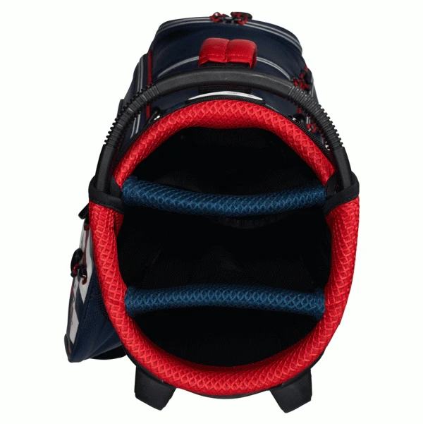 The Callaway Chev C golf stand bag features a 3 way top with full length dividers allowing for excellent club organisation. Featuring an ergonomic dual shoulder carry strap and soft mesh hip pad the Chev C provides comfort and ventilation during your game. The bag features 6 pockets which include 5 zippered pockets and 1 Insulated drinks pocket. An extremely well designed bag the Callaway Chev C is a stylish and highly functional bag offering exceptional value.