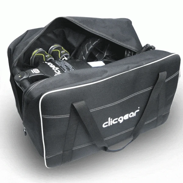 The Clicgear 3.5 & 4.0 Golf Trolley Travel storage bag is an ideal choice for the travelling golfer. This 39cm (15.4”) bag has one compartment and two large internal net pockets. The bag weighs 1.15kg (2.5lbs) and is manufactured from ultra strong, water resistant material with padded protection all way round. It is equipped with a heavy duty zipper and features a name card holder. Additionally, the bag is designed specifically for Clicgear trolleys and ensures easy storage.