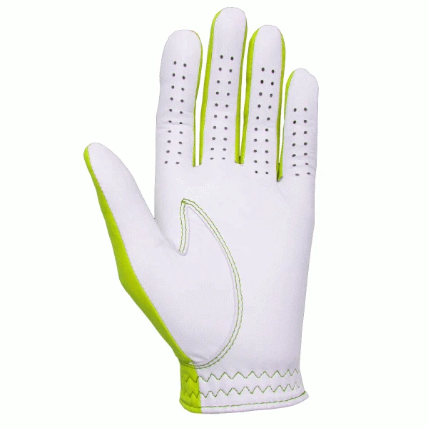 Brighten up your game with the Footjoy Spectrum golf glove. The soft cabretta leather that has been specially tanned to retain colour, resist water and perspiration whilst retaining a soft comfortable feel. The Spectrum glove is very flexible and breathable with Power-Net mesh across the knuckles and offers a contoured fit with an angled tab closure..