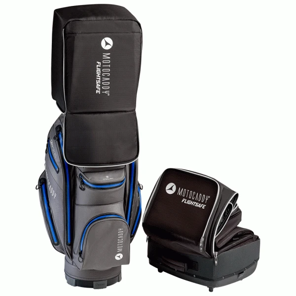 Brand new for 2023 The Motocaddy Flightsafe Travel Cover – With a unique design offering unrivalled club protection, plus wheels for easy transportation. Folds into convenient storage box. Fully padded, 100% durable woven polyester with vinyl panel around bottom for increased durability that protects your equipment and stores all of your essentials for travel.