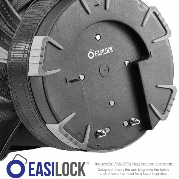 In a ground-breaking first, the exclusive EASILOCK™ system – featured across all new Motocaddy trolleys and bags is designed to lock the cart bag onto the trolley and remove the need for a lower bag strap. Two holes on the trolley’s bag support are aligned with two pins on the base of all new Motocaddy cart bags; ensuring golfers can lock their bag onto the trolley before using the upper bag strap to secure it completely. The two pins on the base of each new trolley bag are removable, so golfers have the option of taking them off to fit an older Motocaddy trolley or other branded models on the market. The trolleys are also supplied with easily detachable straps to allow them to be used with non-EASILOCK™ bags.