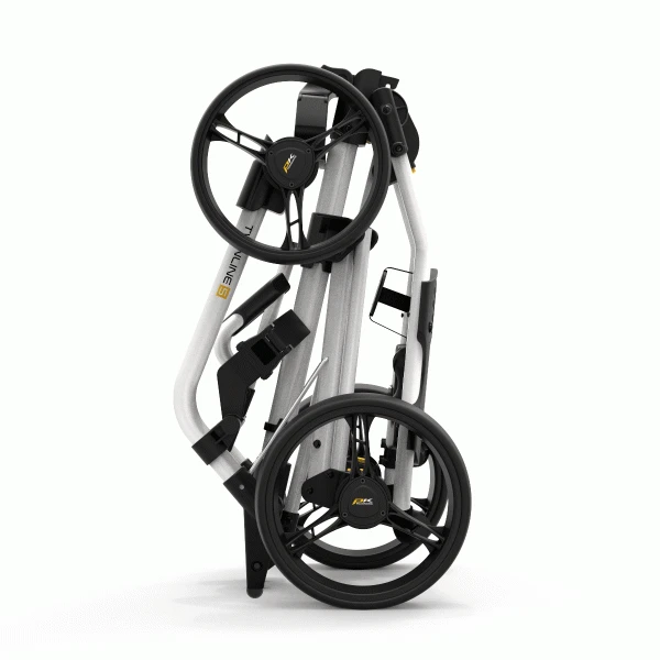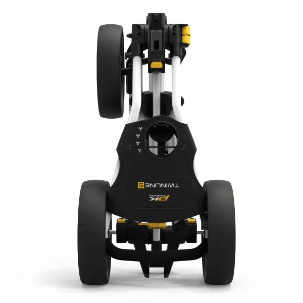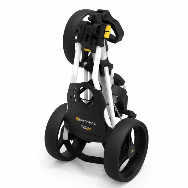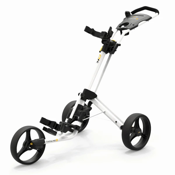 The New & Improved Powakaddy TwinLine 5 is a stylish lightweight push trolley that is very easy to set up, folds down extremely fast and compactly. It is constructed from a strong, lightweight aluminium frame, has a whole host of features including a foot operated parking brake and a height adjustable handle. The 3-wheel design gives you the option of pushing or pulling your trolley and also provides extra stability. It can glide across any terrain with minimum effort saving you energy.