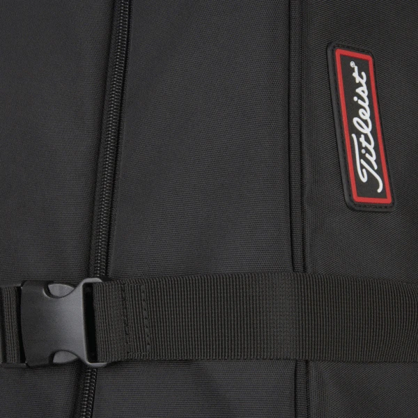 The Titleist Players Travel Cover has room to carry up to a 9.5” golf bag and also features additional internal pockets for golf shoes and internal padded straps to protect clubs during travel.